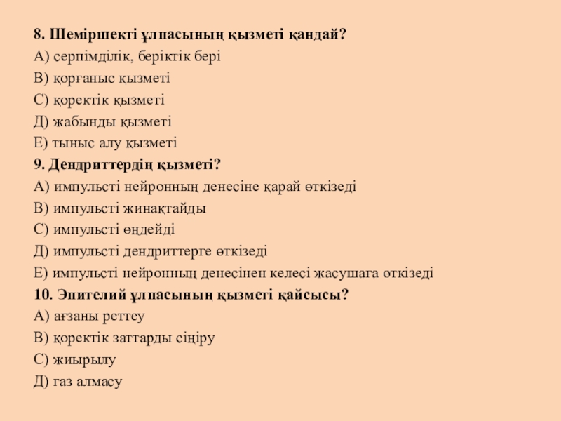 Слайд 168. Шеміршекті ұлпасының қызметі қандай?