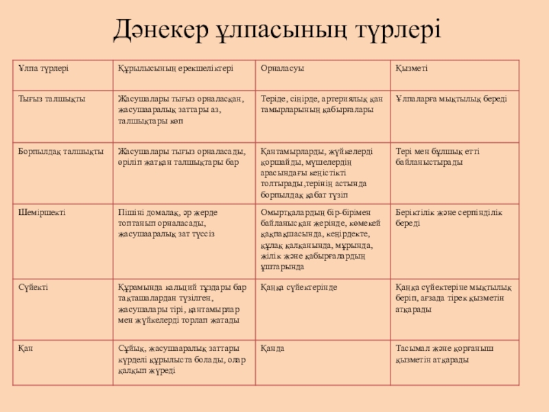 1 Кесте - Ұлпалардың жіктелуі және сипаттамасы