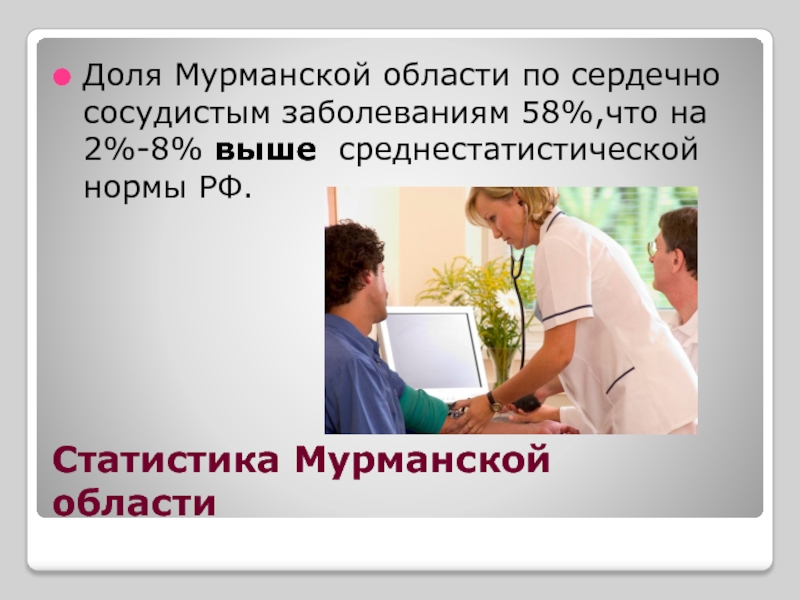 Доля Мурманской области по сердечно сосудистым заболеваниям 58%,что на
