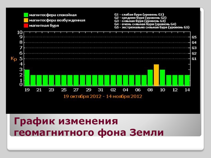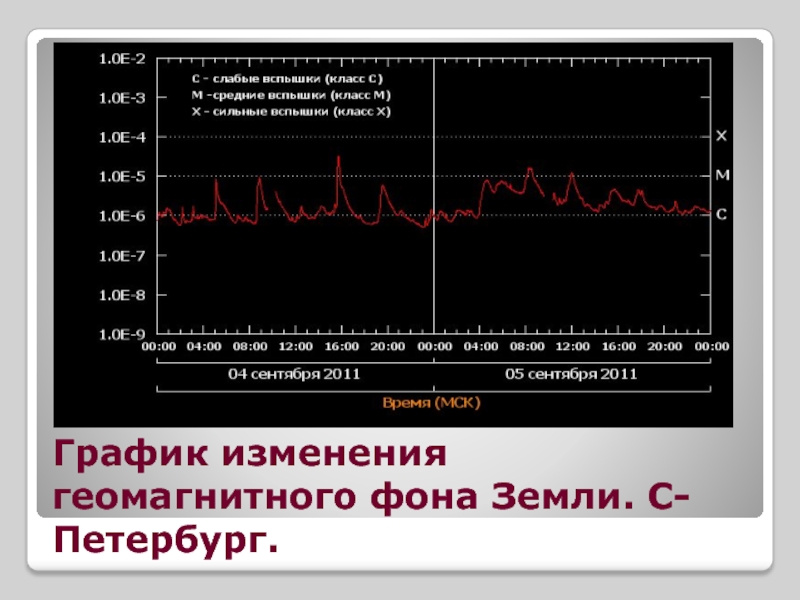 Слайд 20График изменения геомагнитного фона Земли. С-Петербург.