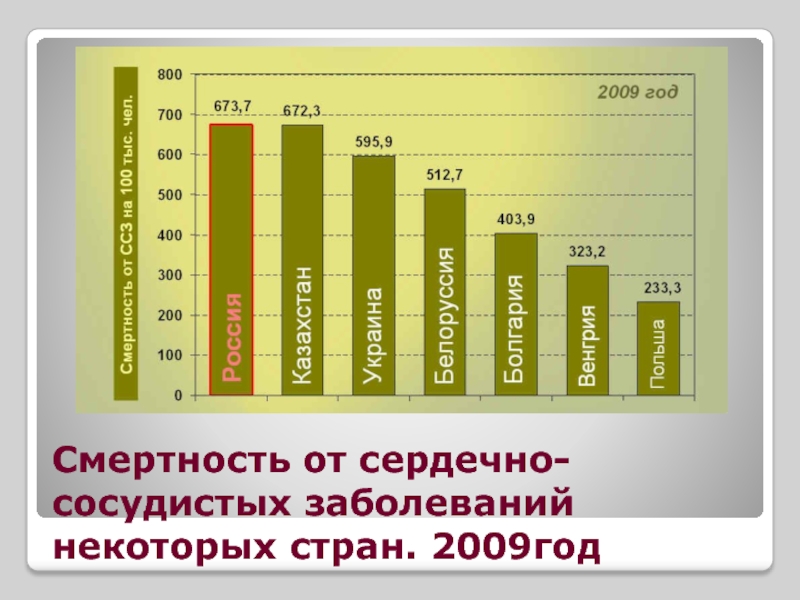 Слайд 18Смертность от сердечно-сосудистых заболеваний некоторых стран. 2009год