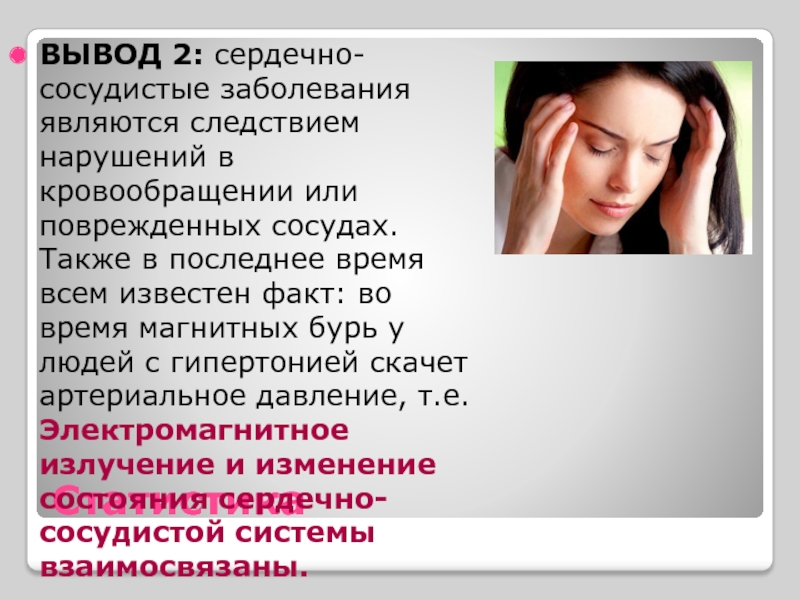 ВЫВОД 2: сердечно-сосудистые заболевания являются следствием нарушений в кровообращении или