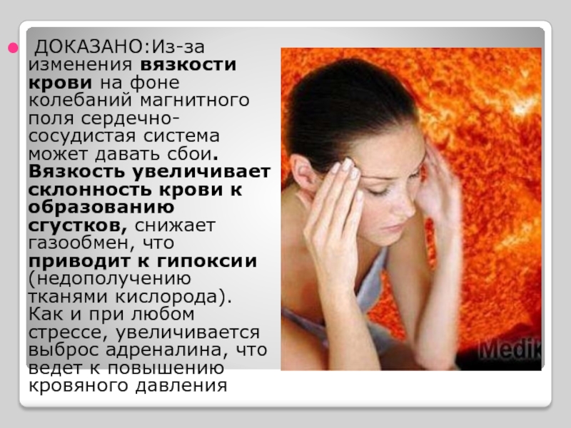 Слайд 9ВЛИЯНИЕ МАГНИТНЫХ БУРЬ НА ЧЕЛОВЕКА