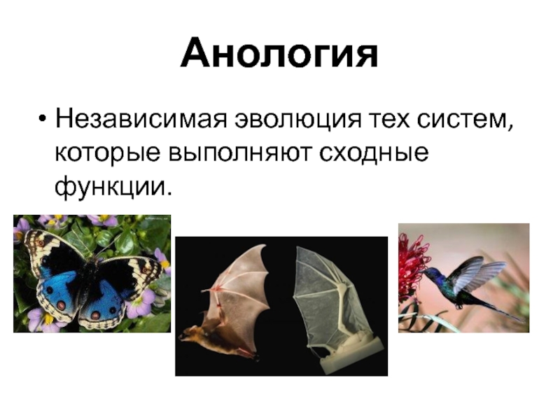 Анология Независимая эволюция тех систем, которые выполняют сходные функции.