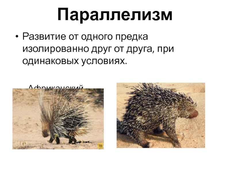 Параллелизм Развитие от одного предка изолированно друг от друга, при одинаковых условиях.    Африканский