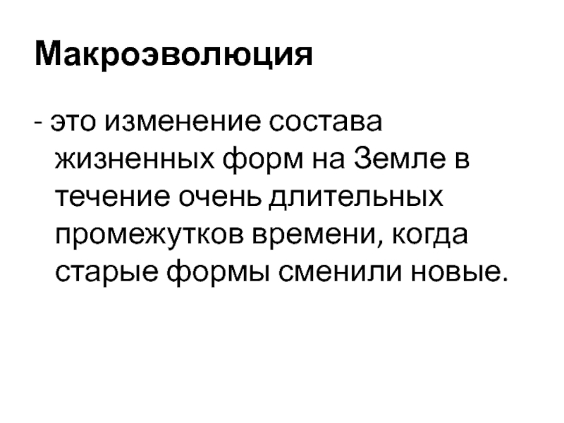 Макроэволюция - это изменение состава жизненных форм на Земле в течение очень длительных промежутков времени, когда старые