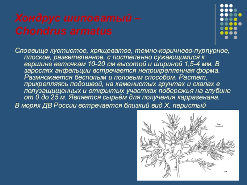 Многолетнее растение с ветвистым кожистым слоевищем высотой 25-50