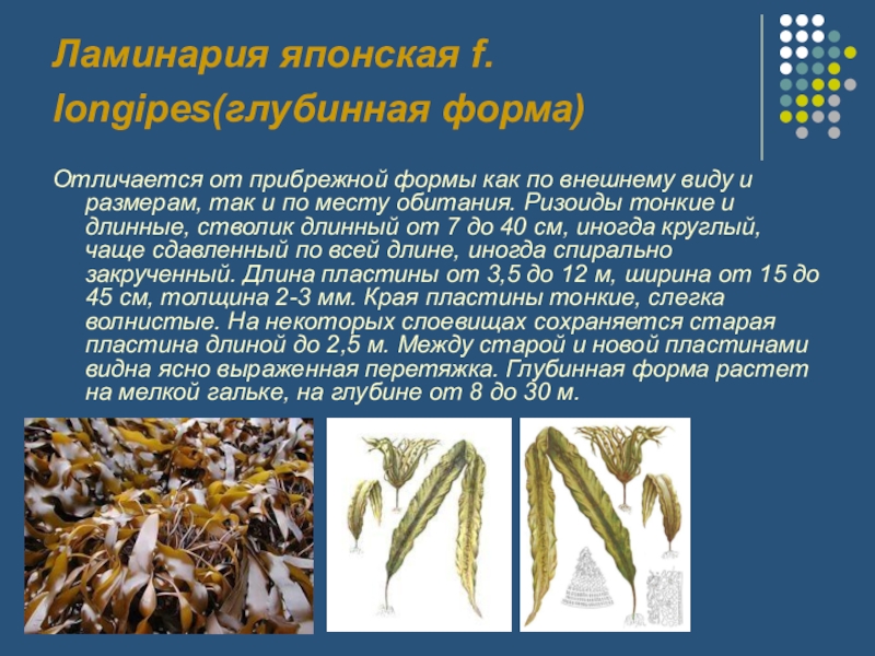 Слайд 9Ламинария японская f. longipes(глубинная форма)