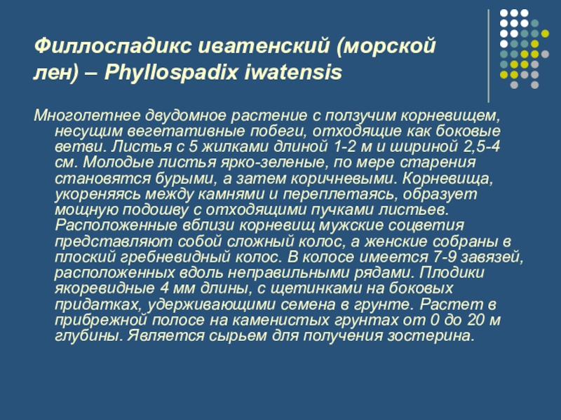 Слайд 29Филлоспадикс иватенский (морской лен) – Phyllospadix iwatensis
