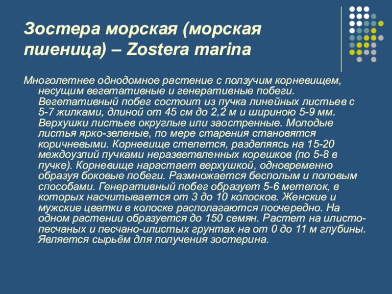 Слайд 27Зостера морская (морская пшеница) – Zostera marina