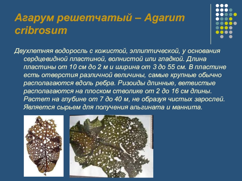 Слайд 12Агарум решетчатый – Agarum cribrosum