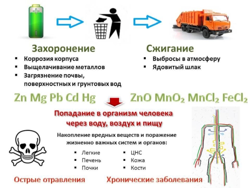 батарейки разрушается и тяжелые металлы,
