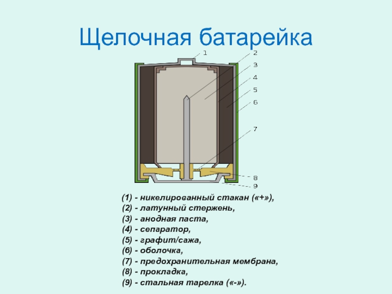 Слайд 12Щелочная батарейка