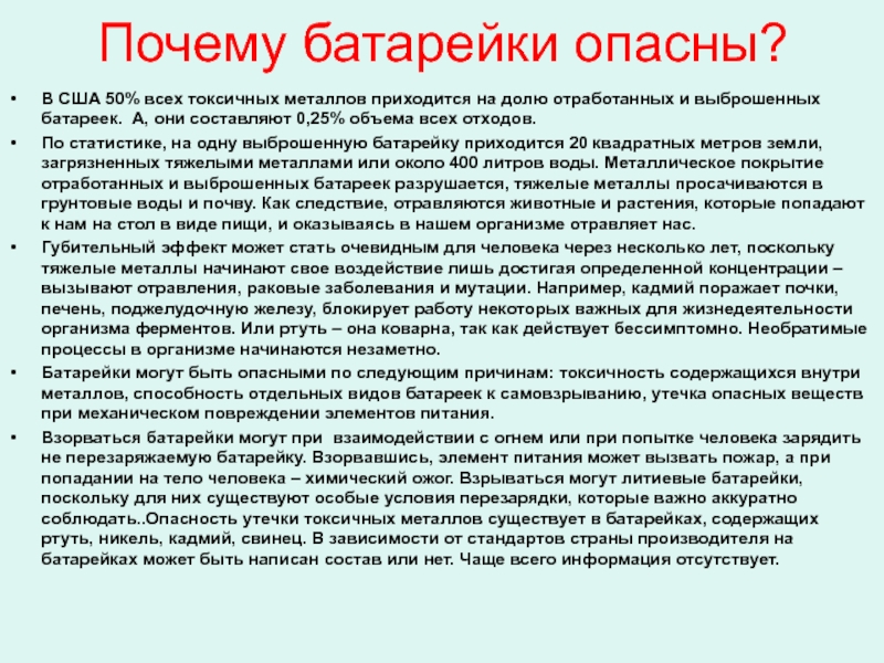 Слайд 15Почему батарейки опасны?