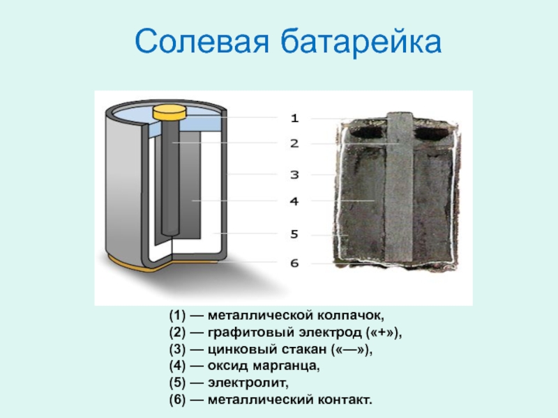 Слайд 11 Солевая батарейка