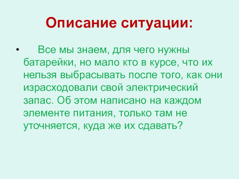 Проблема: из интернета нам стало известно, что во многих крупных городах экологические организации и добровольцы (волонтёры) занимаются сбором использованных батареек для последующей отправки их к местам захоронения и ли утилизации.