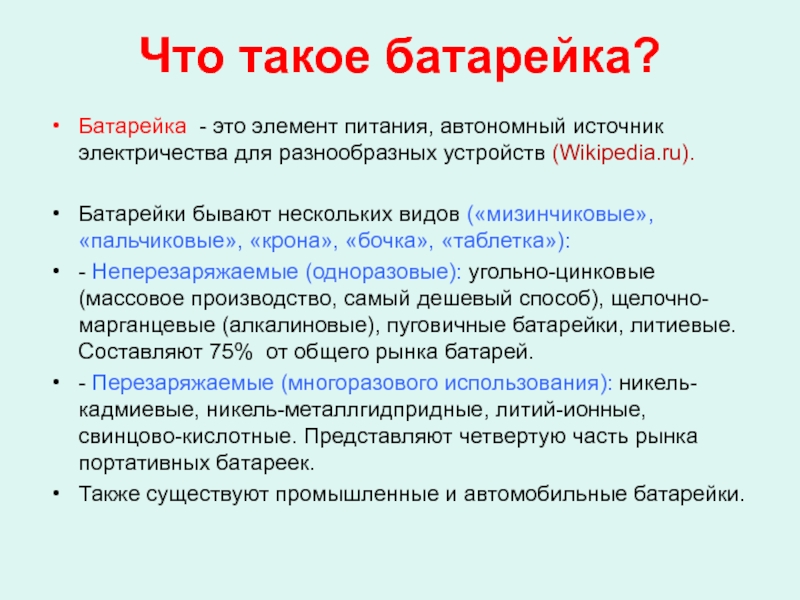 Слайд 10Что такое батарейка?