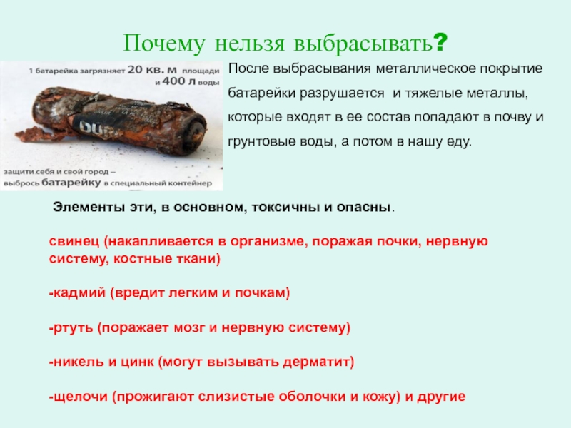Слайд 17Почему нельзя выбрасывать?