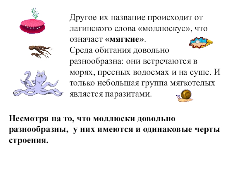 Несмотря на то, что моллюски довольно разнообразны, у них имеются и одинаковые черты строения.