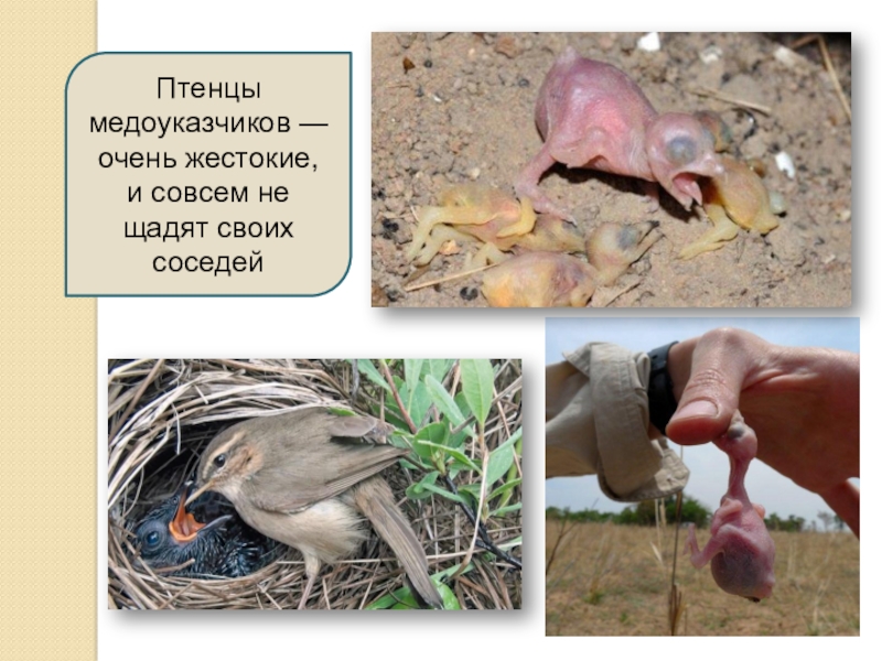 Слайд 12Птенцы медоуказчиков — очень жестокие, и совсем не щадят своих соседей