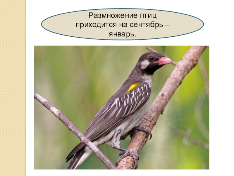Слайд 10Размножение птиц приходится на сентябрь – январь.