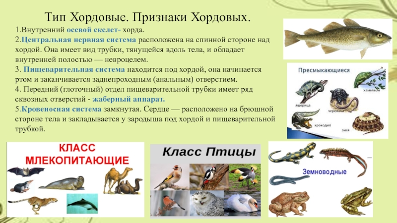 Слайд 4Тип Хордовые. Признаки Хордовых.