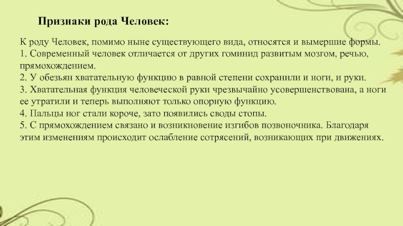 Слайд 9Признаки рода Человек: