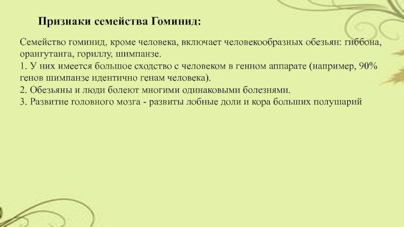Слайд 8Признаки семейства Гоминид: