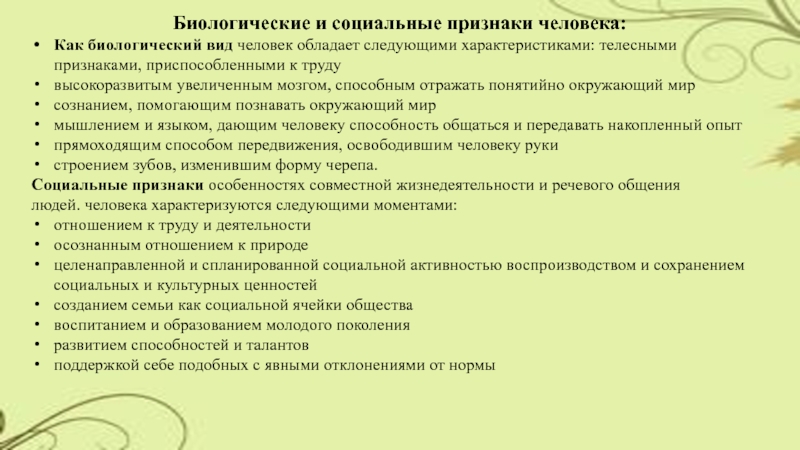 Слайд 11Биологические и социальные признаки человека: