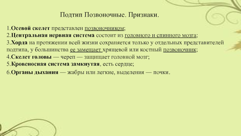 Слайд 5Подтип Позвоночные. Признаки.