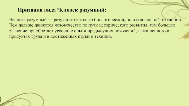 Человек разумный — результат не только биологической, но