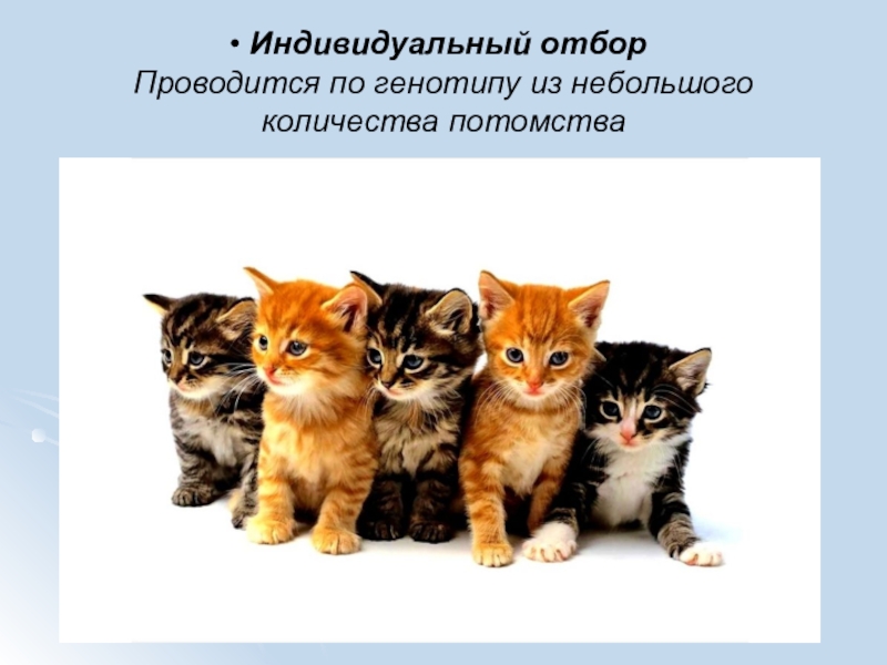 Слайд 5 Индивидуальный отбор Проводится по генотипу из небольшого количества потомства