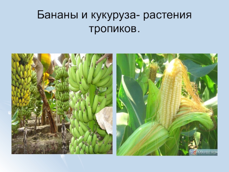 Слайд 7Бананы и кукуруза- растения тропиков.