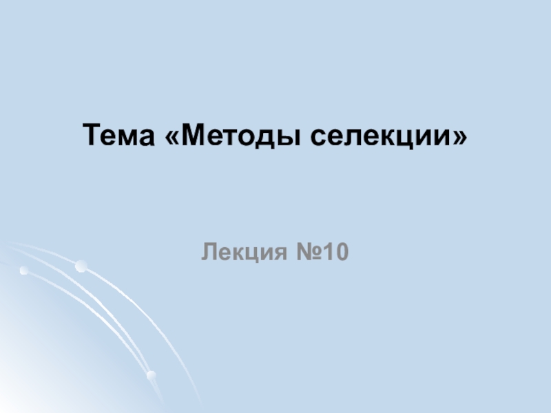 План. 1.Основные методы селекции 2.Современные методы селекции