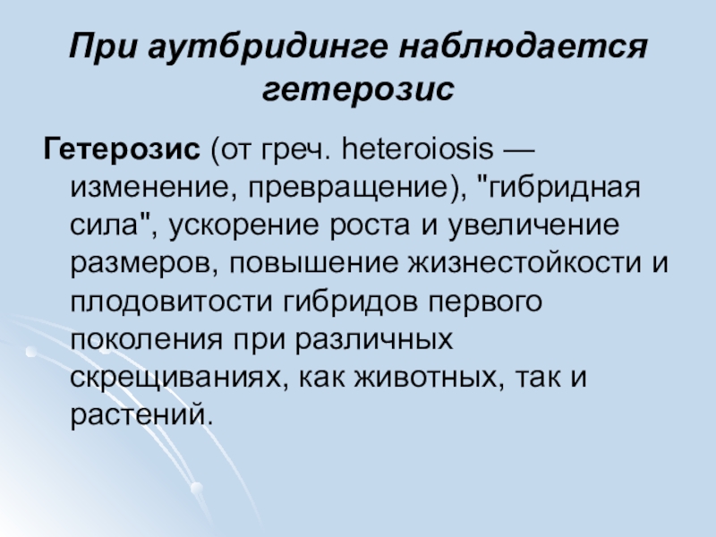 При аутбридинге наблюдается гетерозисГетерозис (от греч. heteroiosis — изменение, превращение),