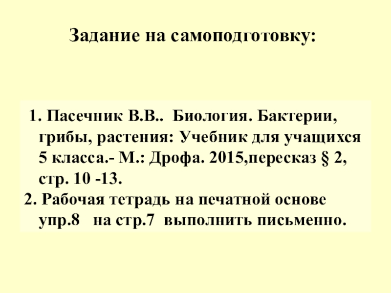 Задание на самоподготовку:
