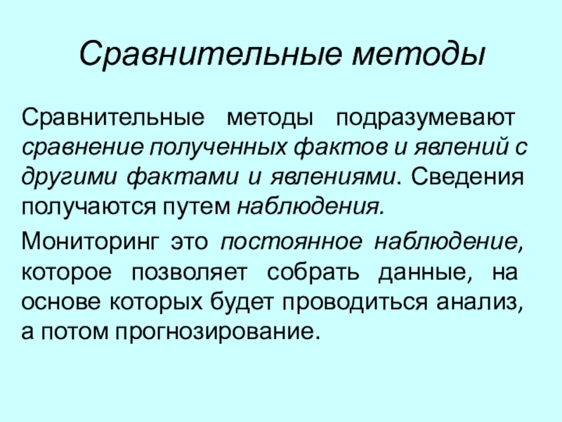 Сравнительные методы подразумевают сравнение полученных фактов и явлений с другими