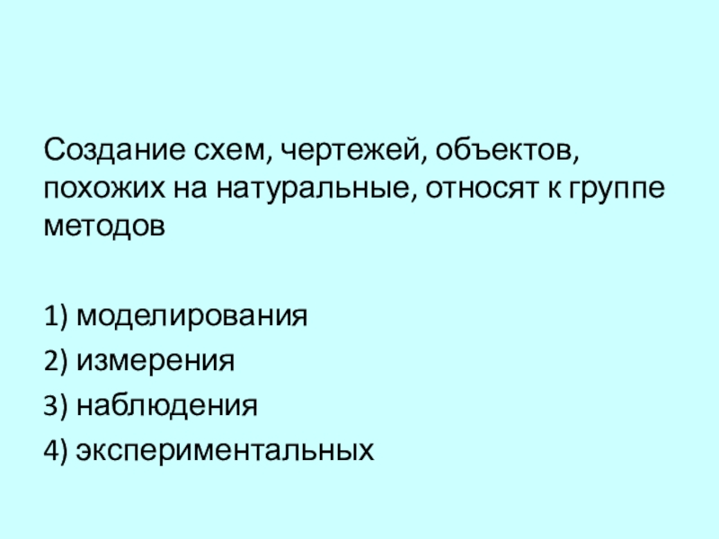 Слайд 13Создание схем, чертежей, объектов, похожих на натуральные, относят к группе методов