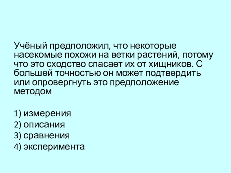 Слайд 12Учёный предположил, что некоторые насекомые похожи на ветки растений, потому что