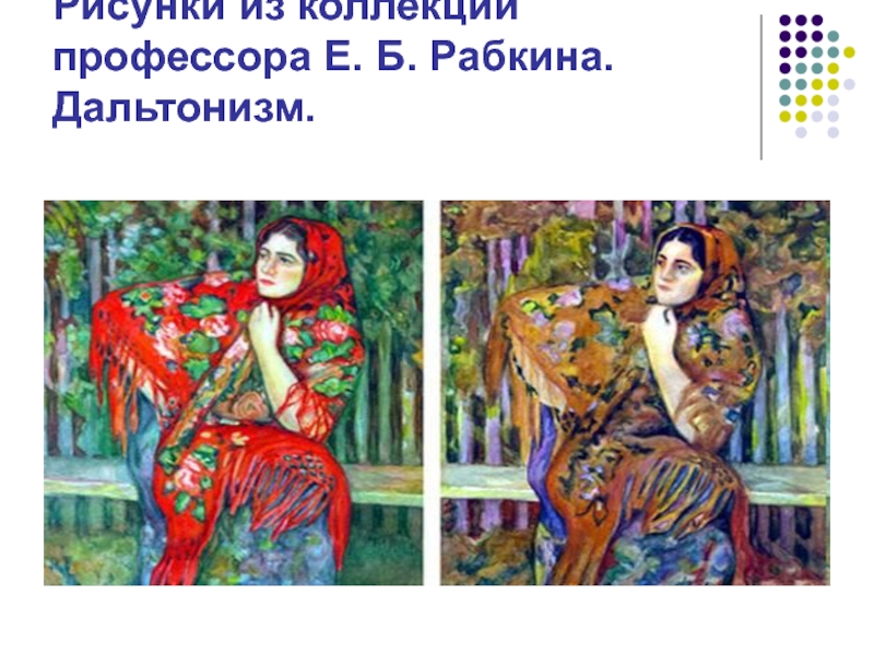 Слайд 8Рисунки из коллекции профессора Е. Б. Рабкина. Дальтонизм.