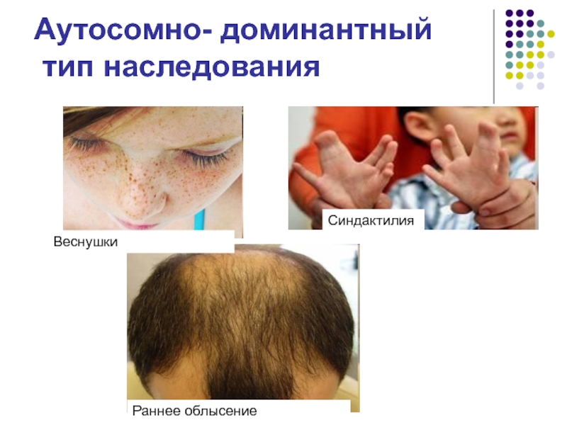 Аутосомно- доминантный  тип наследования ВеснушкиРаннее облысениеСиндактилия