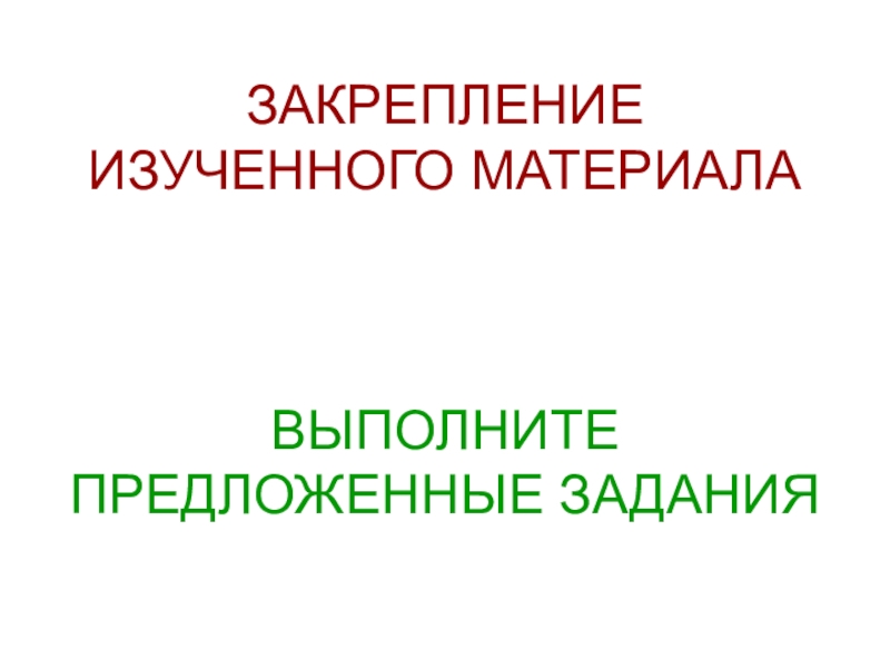 Слайд 26ЗАКРЕПЛЕНИЕ ИЗУЧЕННОГО МАТЕРИАЛА