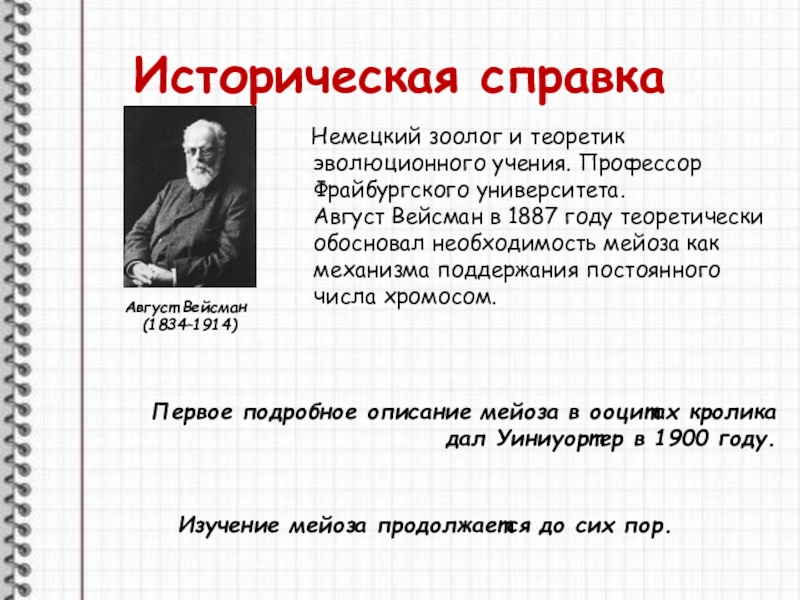 Первое подробное описание мейоза в ооцитах кролика дал Уиниуортер в 1900 году.