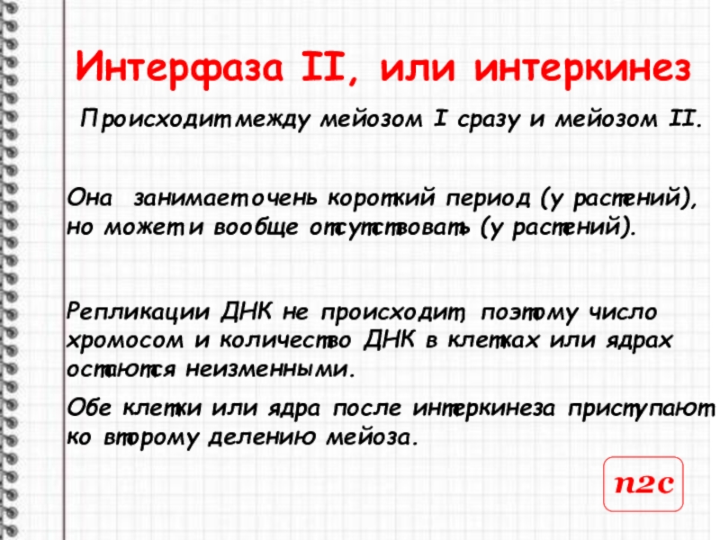 Репликации ДНК не происходит, поэтому число хромосом и количество ДНК в клетках или ядрах остаются неизменными.