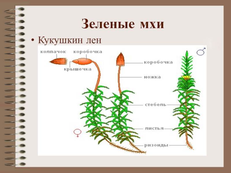 Тело состоит из побега (стебель и листья), кроме печеночных мхов