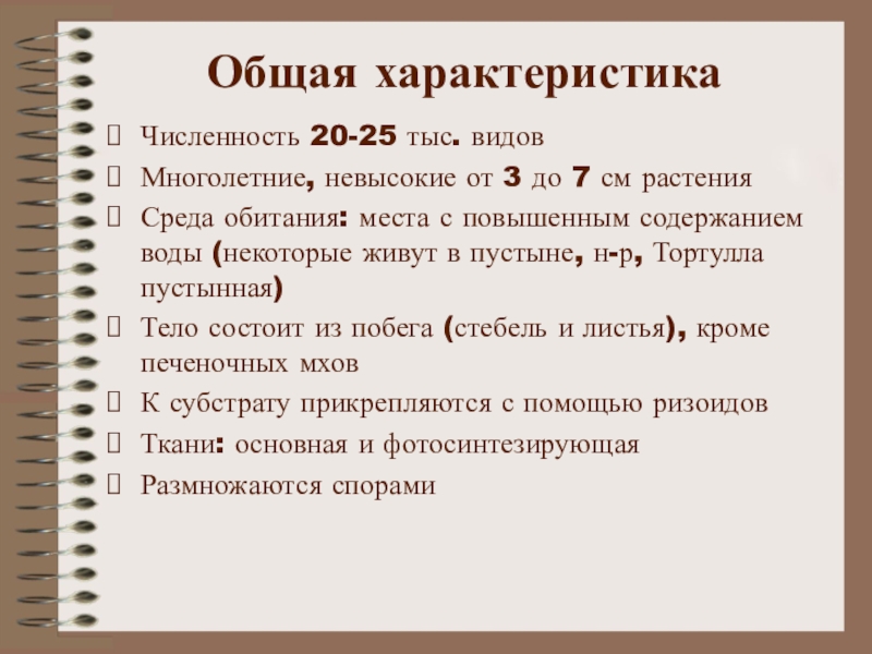 Общая характеристикаЧисленность 20-25 тыс. видовМноголетние, невысокие от 3 до 7 см растенияСреда обитания: места с повышенным содержанием