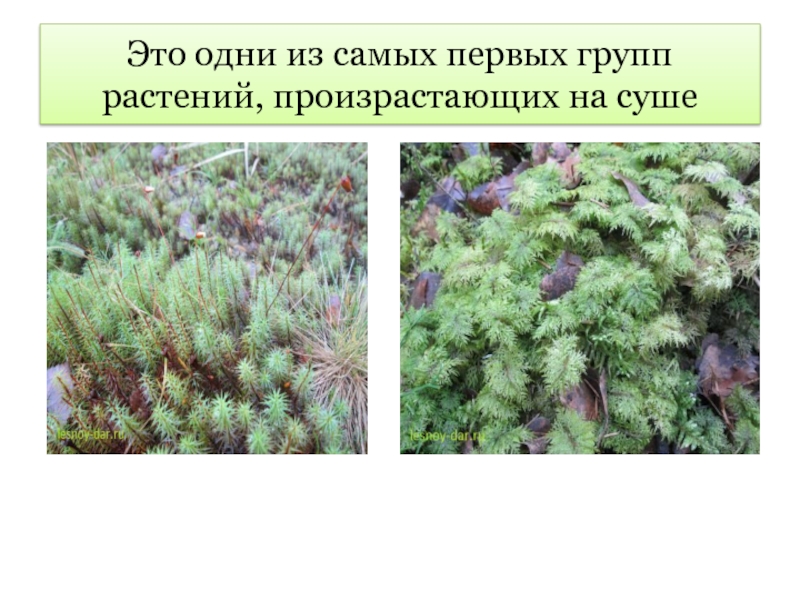 Слайд 2Это одни из самых первых групп растений, произрастающих на суше