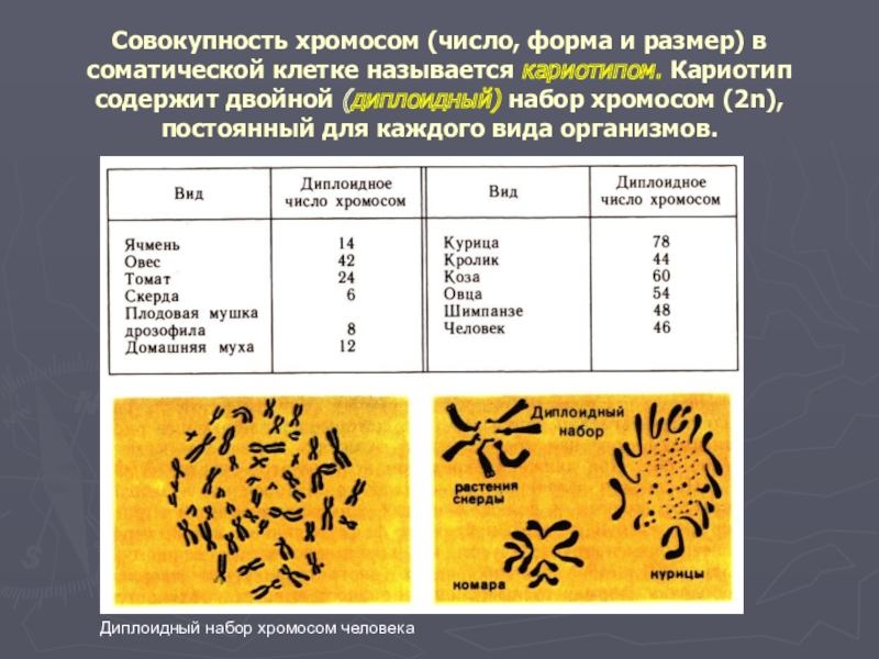 Слайд 16Совокупность хромосом (число, форма и размер) в соматической клетке называется кариотипом.