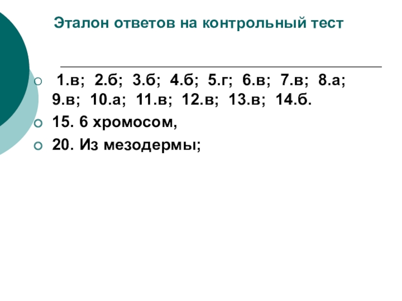 Слайд 38 Эталон ответов на контрольный тест