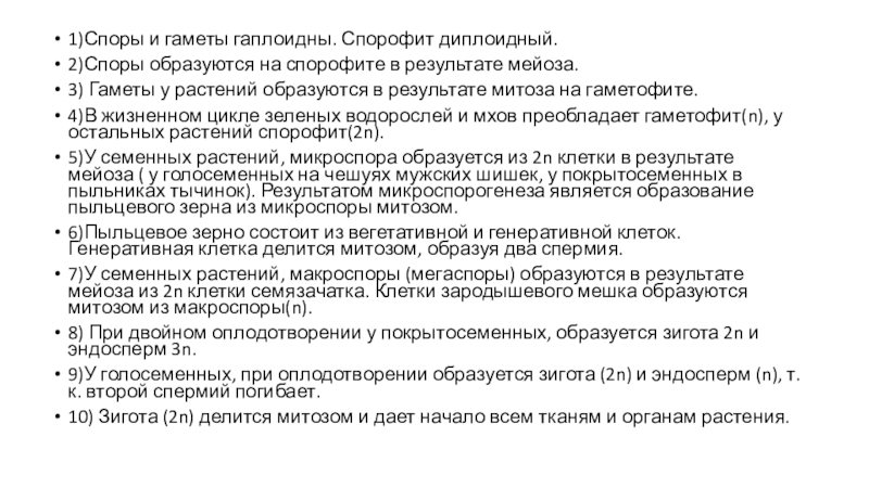 Слайд 271)Споры и гаметы гаплоидны. Спорофит диплоидный.